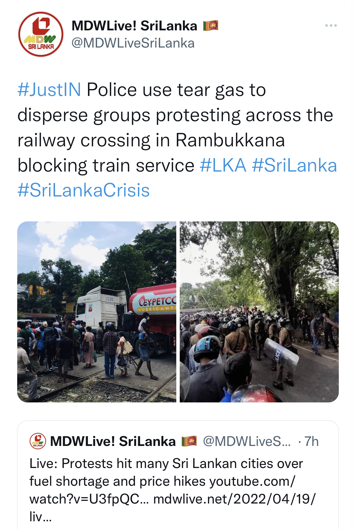 The people had blocked a highway in central Sri Lanka’s Rambukkana, 95 km from capital Colombo, to protest acute oil shortages and high prices.