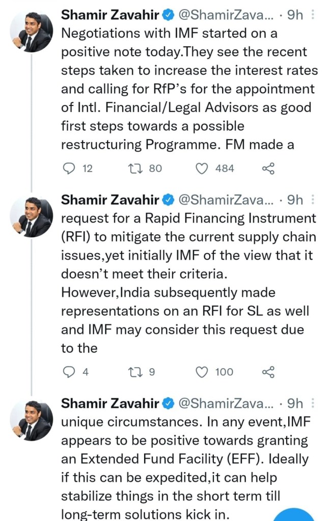 Shamir Zavahir, an aide to Sabry, said on Twitter that Sri Lanka asked for a loan under the rapid financial instrument (RFI) window, meant for countries needing urgent balance-of-payment support. But the global lender was initially not inclined to grant the request, he said.
