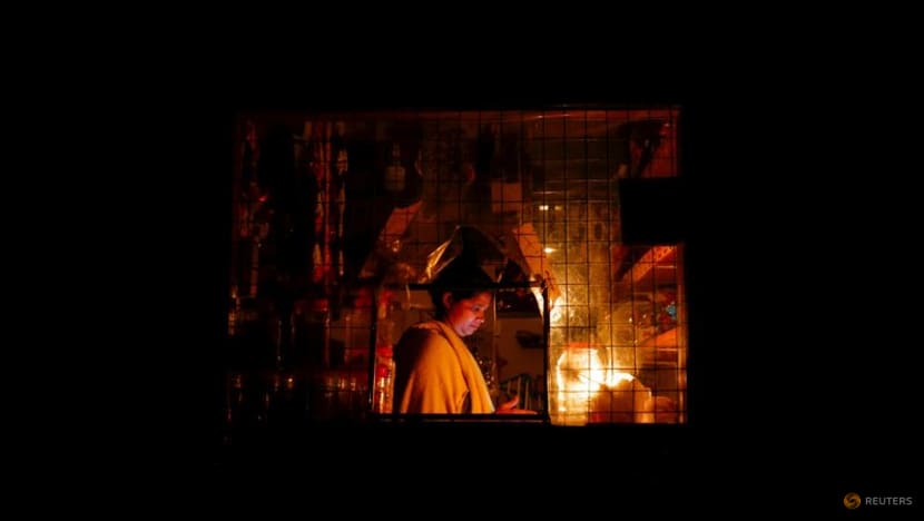 A woman works inside a shop attached to her house during a power cut in Colombo, Sri Lanka, Mar 30, 2022. (Photo: Reuters/Dinuka Liyanawatte)
