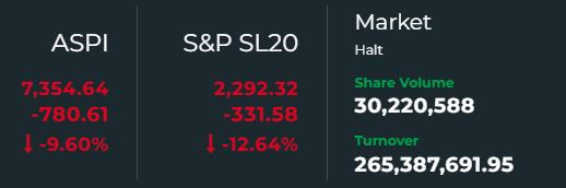 Monday was the first morning of trade on the Colombo bourse since a weeklong Sri Lankan New Year holiday and a subsequent five-day trading halt after the government hiked interest rates and defaulted on its $51 billion foreign debt.