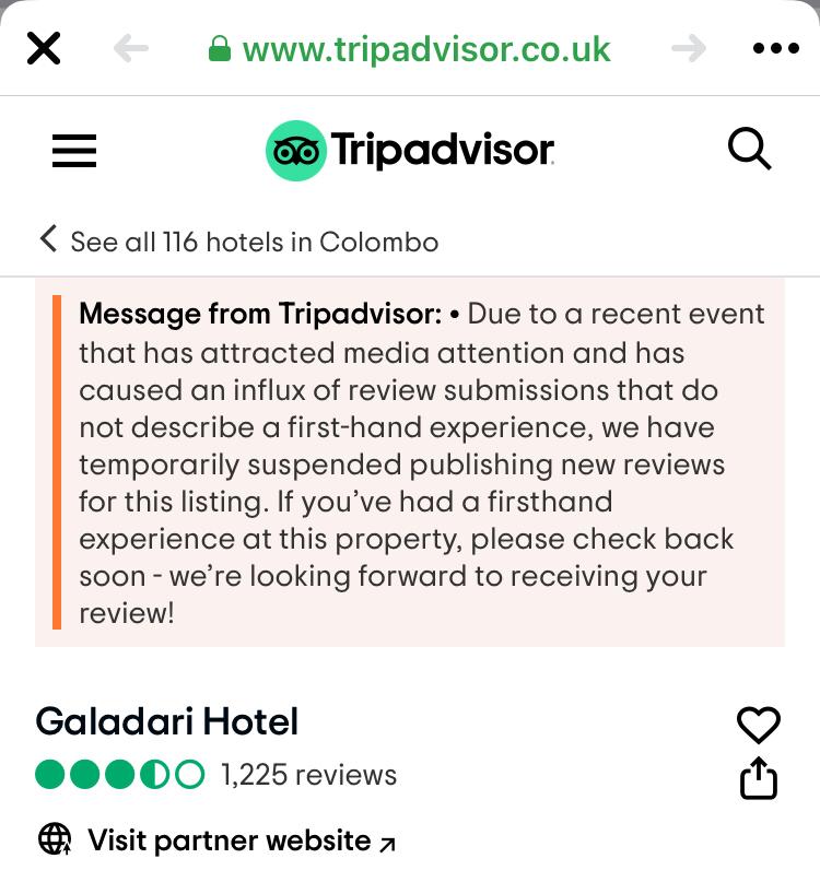 Social media users have attacked Galadari Hotel ratings on various sites such as Google and TripAdvisor bringing it down from 4.3 to 2.0 overnight. TripAdvisor has moved to suspend reviews.