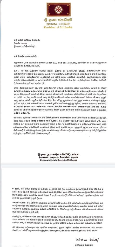 President also said that Opposition Leader’s letter had some conditions which had not being agreed by party leaders yet.