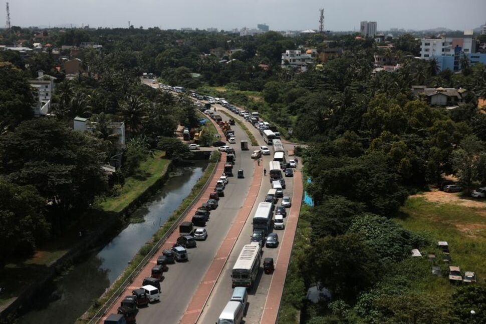 Diesel vehicles queue up in a long line to buy diesel due to a fuel shortage countrywide, amid the country’s economic crisis, in Colombo, Sri Lanka, June 8, 2022. REUTERS/Dinuka Liyanawatte