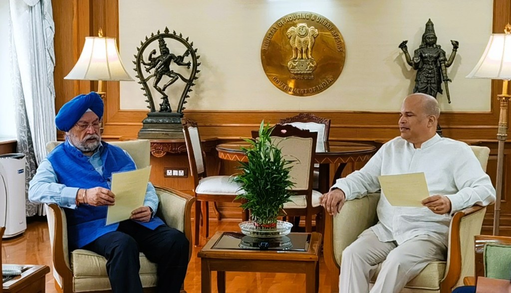 Sri Lanka’s high commissioner Milinda Moragoda briefed Indian petroleum minister Hardeep Singh Puri about Lanka’s “acute challenges” with regard to supply of petroleum products (Twitter/SLinIndia)