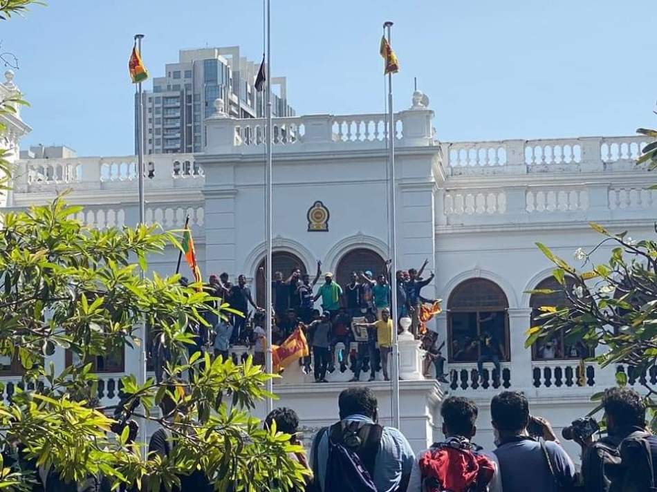 At least 24 injured and hospitalised during the protest at the Prime Minister’s Office at Flower Road. Protesters are seen on the balcony of the PMs office.