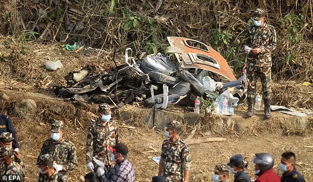 Images and videos shared on Twitter showed plumes of smoke billowing from the crash site, about 1.6 kilometers (nearly a mile) away from Pokhara International Airport. The aircraft’s fuselage was split into multiple parts that were scattered down the gorge.