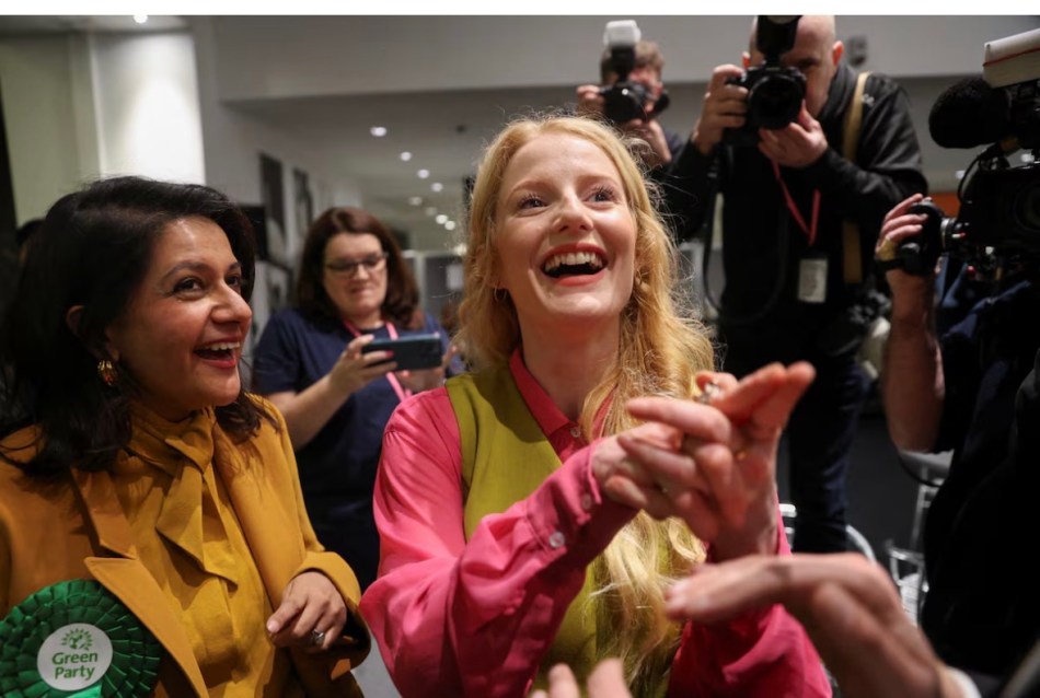 The Green Party won 40.7% of the vote on Friday in an election triggered when a member of parliament resigned for health reasons. Nigel Farage’s Reform Party came second with 28.7% of the vote and Labour finished third with 25.4%.