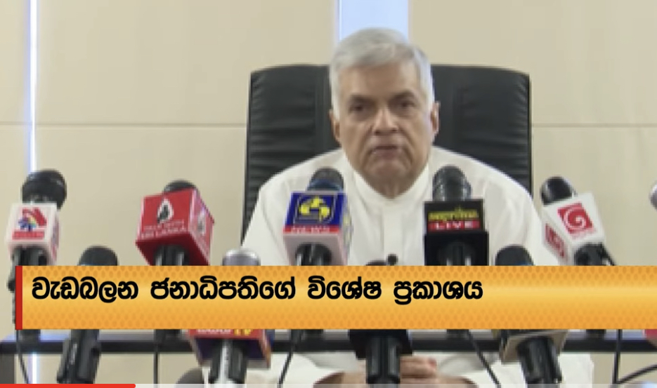 Watch : Acting President Ranil blames unrest on ‘facist’ elements, requests support to Police, tri-forces
