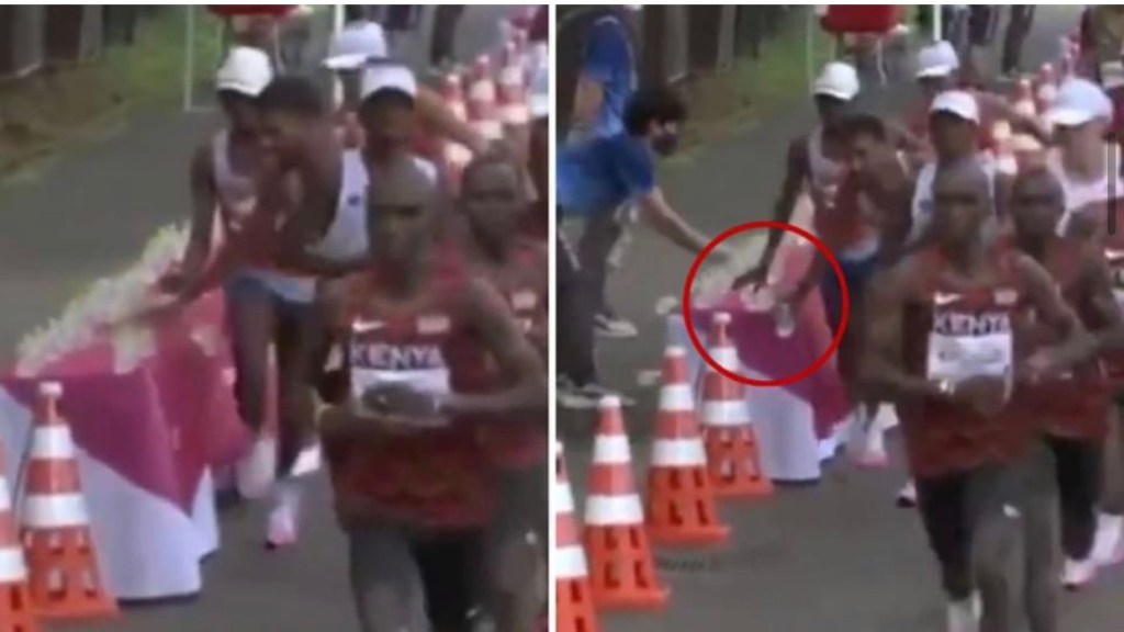 French marathon runner Morhad Amdouni appeared knock a whole row of water bottles onto the floor, on the final dayContinue Reading
