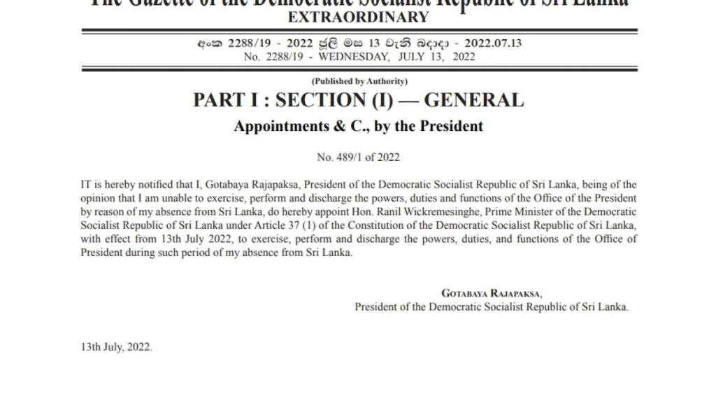 Gazette Extraordinary published by the President, appointing Prime Minister Ranil Wickremesinghe to exercise, perform & discharge the powers, duties &Continue Reading